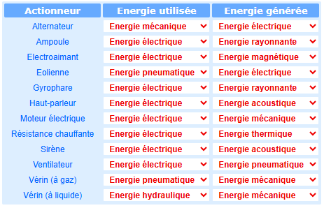 Principe : un actionneur génère donc une action en transformant une énergie en une autre.